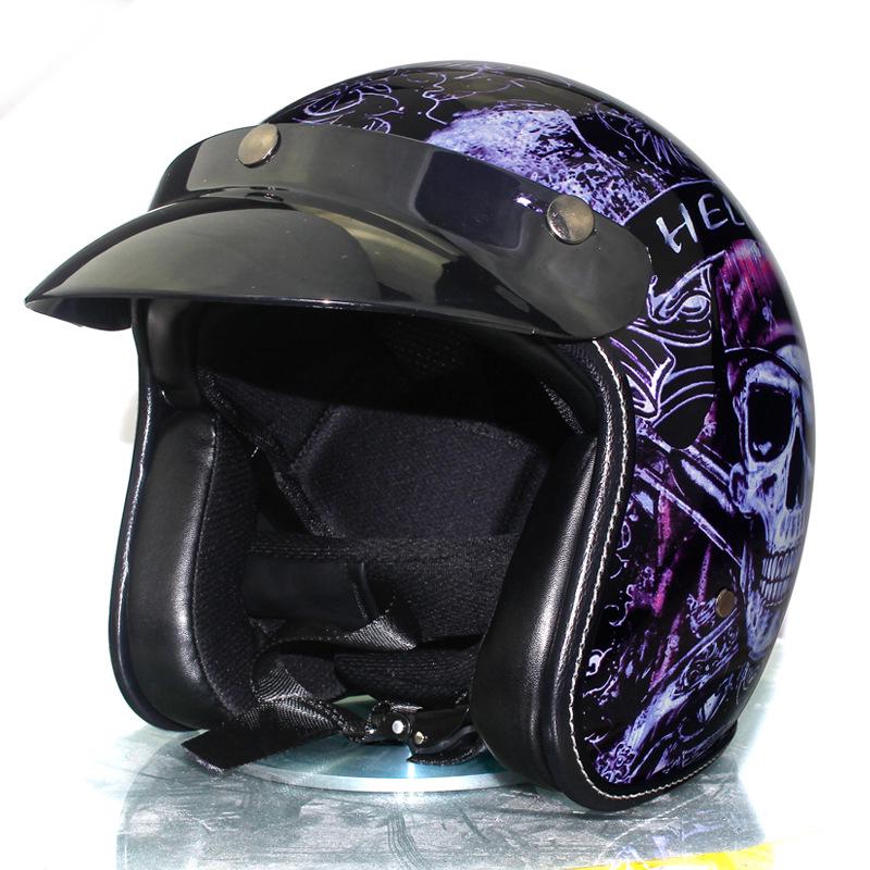 Vintage 3 4 Face Mask Motorcycle Pu Leather Helmet