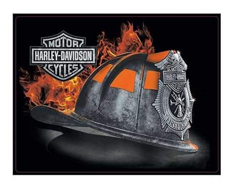 Amazon Com Harley Davidson Embossed Firefighter Helmet Tin