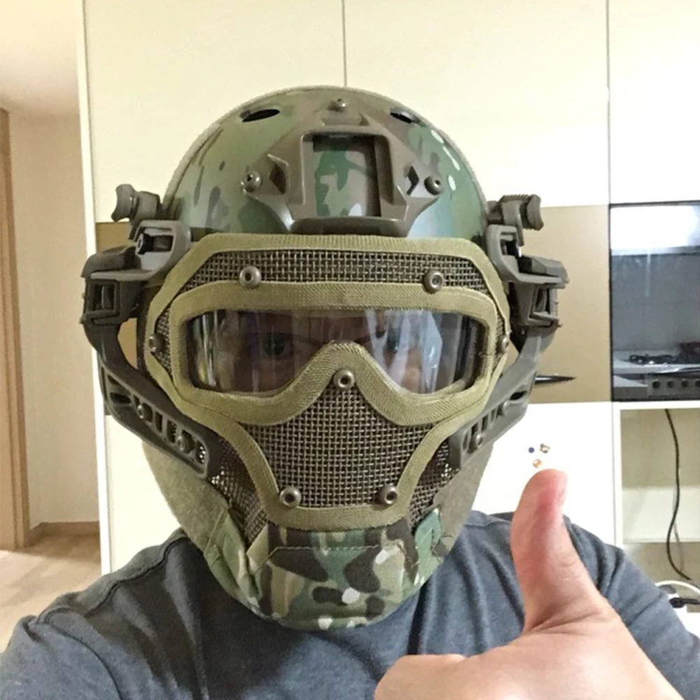 Speedsuprex Airsoft Helmet Tactical Military Helmet Protective Fast Helmet Full Face Mesh Mask With Goggle For Airsoft Paintball Cs Outdoor Activity